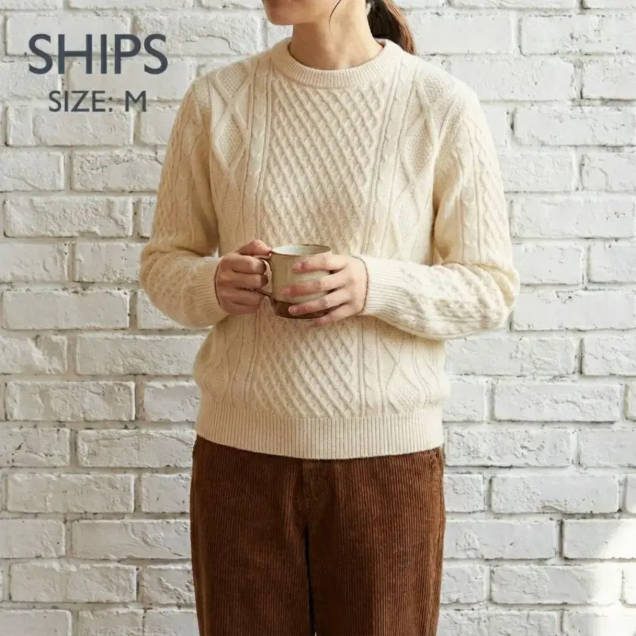 천연 양모 100% 소재 특유의 부드러운 촉감과 높은 보온성이 매력적인 아이템입니다. 짜임새 있는 케이블 디자인은 심플하면서도 존재감이 있어, 코디네이트의 주인공으로 활약합니다. 부드러운 아이보리 색상은 얼굴 주변을 밝게 보여주며, 고급스럽고 여성스러운 인상을 연출해 줍니다. 데님이나 스커트는 물론, 셔츠와의 레이어드 스타일에도 궁합이 좋습니다. 가을/겨울에 딱 맞는 다용도 니트입니다.