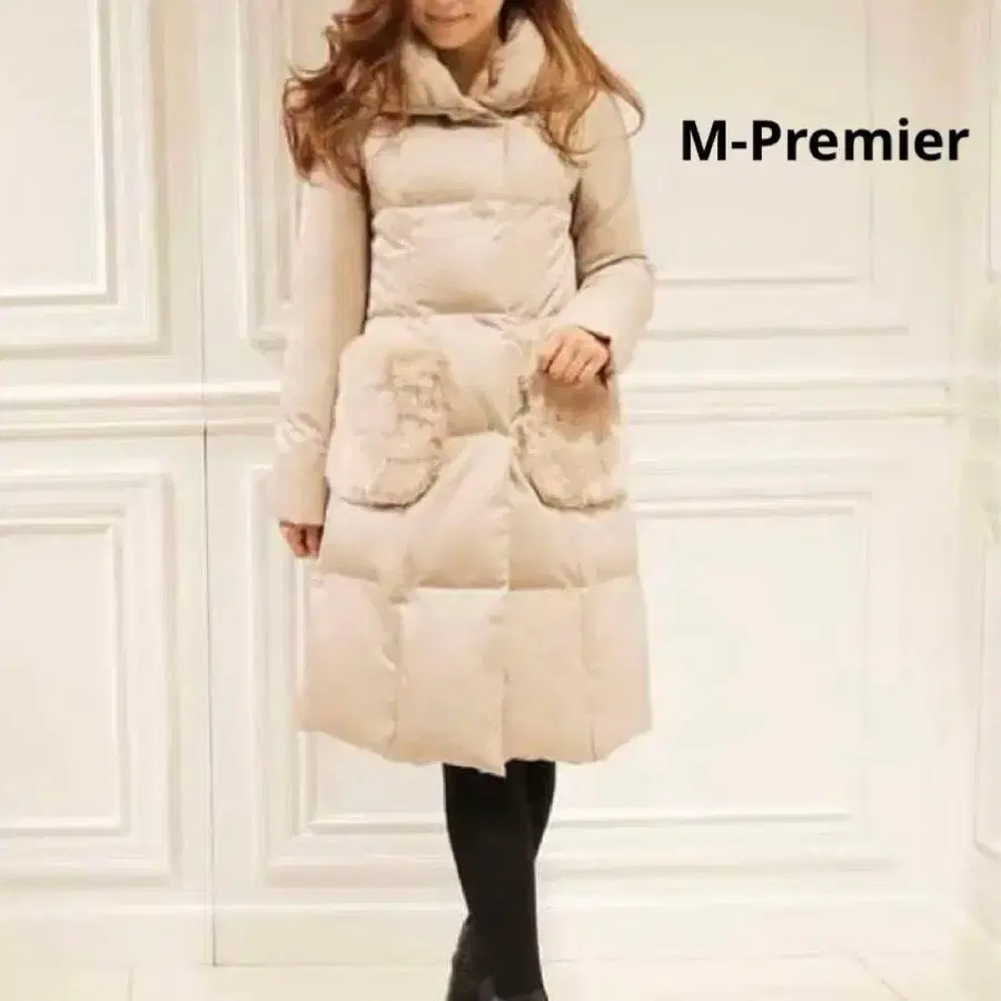 새상품급 M-Premier 퍼 포켓 다운 코트 숄카라 베이지