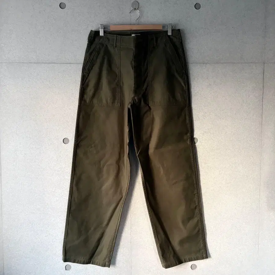 70년대 유틸리티 팬츠를 베이스로 한 베이커 팬츠에 몰스킨 소재로 별주. 사이드는 두 줄 바늘 롤링 스티치 봉제를 하여, 소재뿐만 아니라 디자인에도 코다와리(고집)가 느껴지는 한 벌입니다. 깊은 인심과 약간 테이퍼드된 실루엣은 밀리터리 팬츠라고는 믿기지 않는 품격 있는 모습의 일품이 되었습니다.