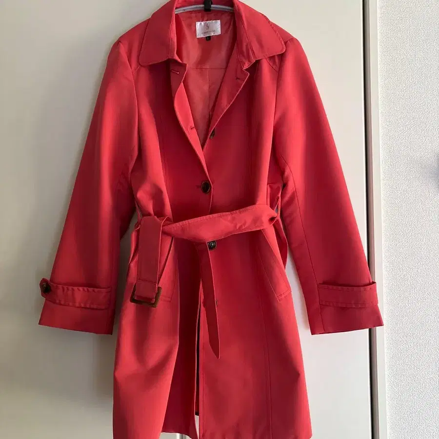 코랄 핑크 숏 트렌치코트 허리 벨트 포함