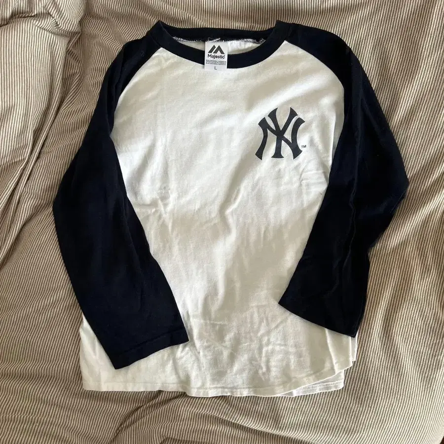 빈티지 7부 소매 래글런 긴팔 티셔츠 양키스 로고