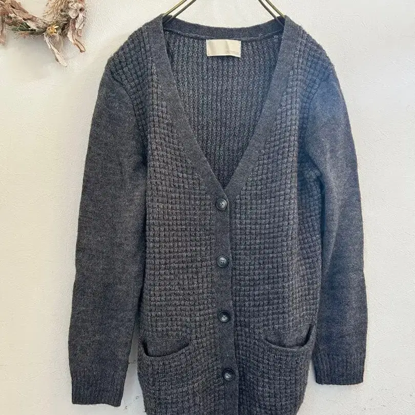 자동 번역되었어요. 원문보기다크 그레이 니트 가디건, V넥과 포켓이 있어 스타일리시합니다.