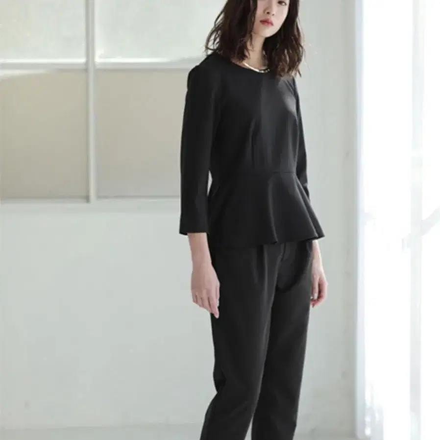 상의: 배 주위를 커버해 주는 페플럼 디자인. 허리 위치가 높아 보여 스타일업 효과가 있습니다.