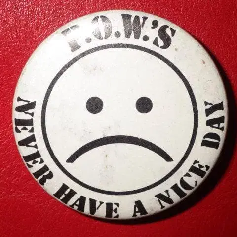 70년대 빈티지 ♪ P.O.W.'S Never Have A Nice Day 캔뱃지입니다 ♪ 베트남 전쟁 시, 포로 해방을 염원하며 [ P.O.W.'S NEVER HAVE A NICE DAY/포로에게 좋은 날은 결코 오지 않는다 ]는 문자와 심술궂은 얼굴이 디자인된 역사를 느낄 수 있는 독특한 스마일리 같은 일품 ♪ 사이즈는 직경 4.4cm 정도이며, 상태는 미국에서 오랫동안 잠들어 있던 미사용 데드스탁입니다. 미사용품이지만 오래된 물건 특유의 질감, 얼룩, 흠집, 녹 등이 있으며 이미 빈티지의 멋과 분위기가 있는 일품입니다 ♪ 오래된 물건에 대한 이해가 있고 로망을 아는 분, 잘 부탁드립니다 ♪ 발송은 대형우편, 무료배송으로 ♪ 가격 인하 협상은 받지 않으니 양해 부탁드립니다 ♪ 70년대 P.O.W.'S Never Have A Nice Day 캔뱃지 빈티지 히피 베트남 전쟁 스마일리 배치 반전 USA 잡화 평화