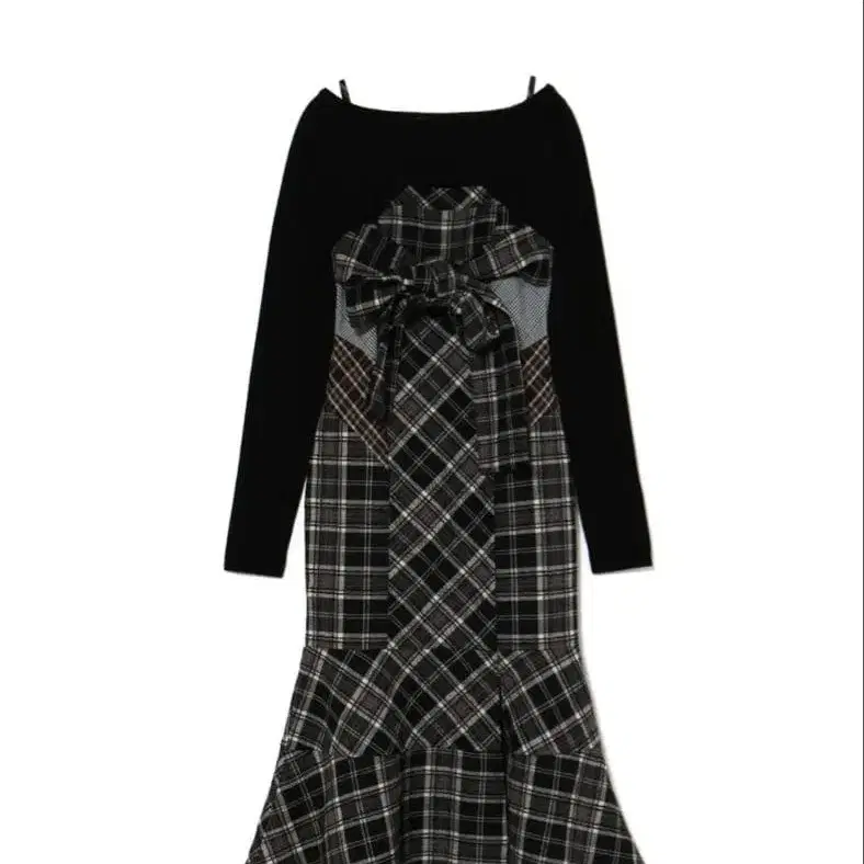 ANDMARY Juni check dress 머메이드 롱 원피스