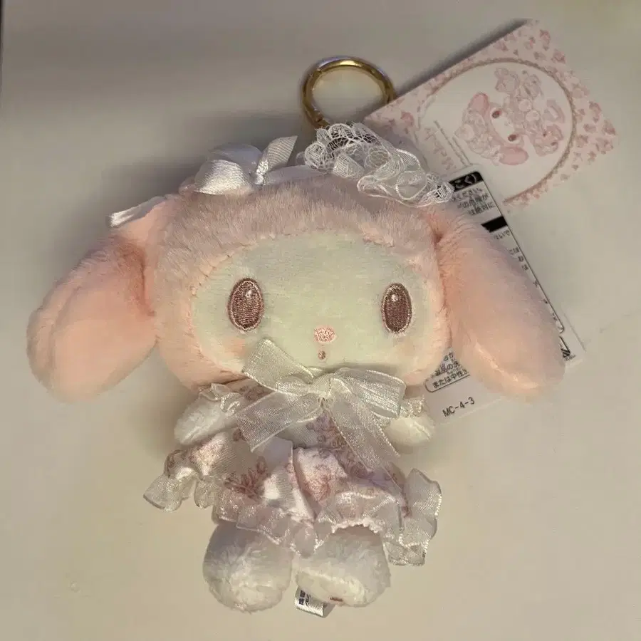 마이멜로디 화이트 딸기 티타임 봉제 인형 마스코트 키링