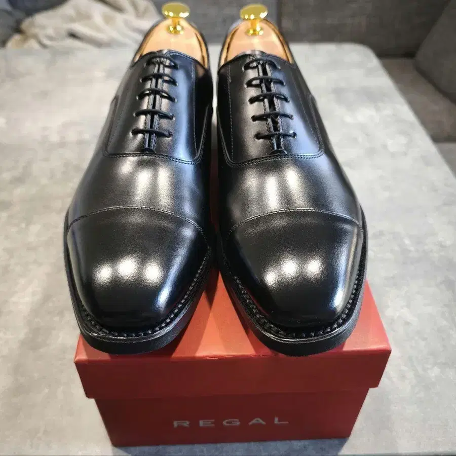 블랙 컬러 갑피의 마감에는 광택감을 살리는 처리 (카프 폴리시)를 하여 고급스러운 외관을 추구했습니다.