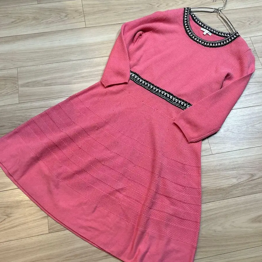새상품급 폴카 코튼 니트 원피스 M 트위드풍 뜨개질 핑크