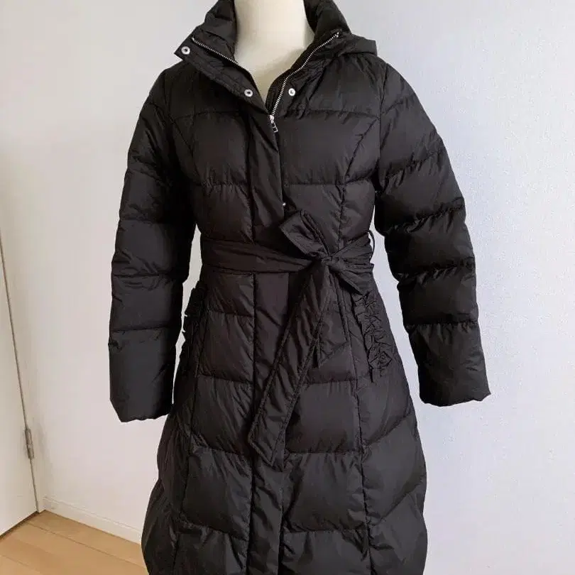 QUEENS COURT 프릴 포켓 롱 다운 코트 블랙