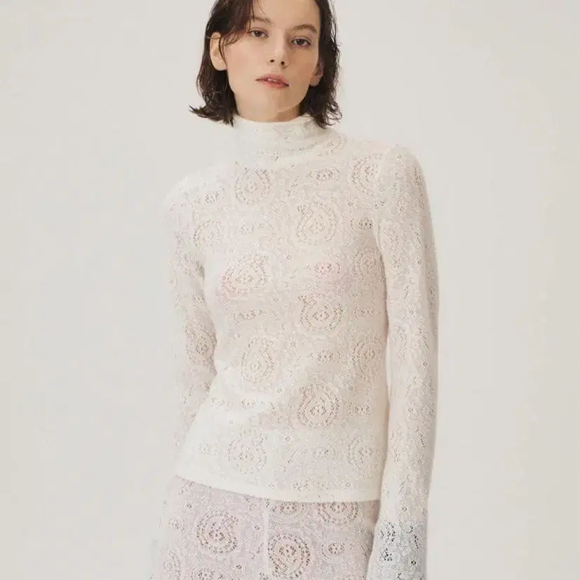 [ KUME 한국 ] 페이즐리 레이스 하이넥 탑