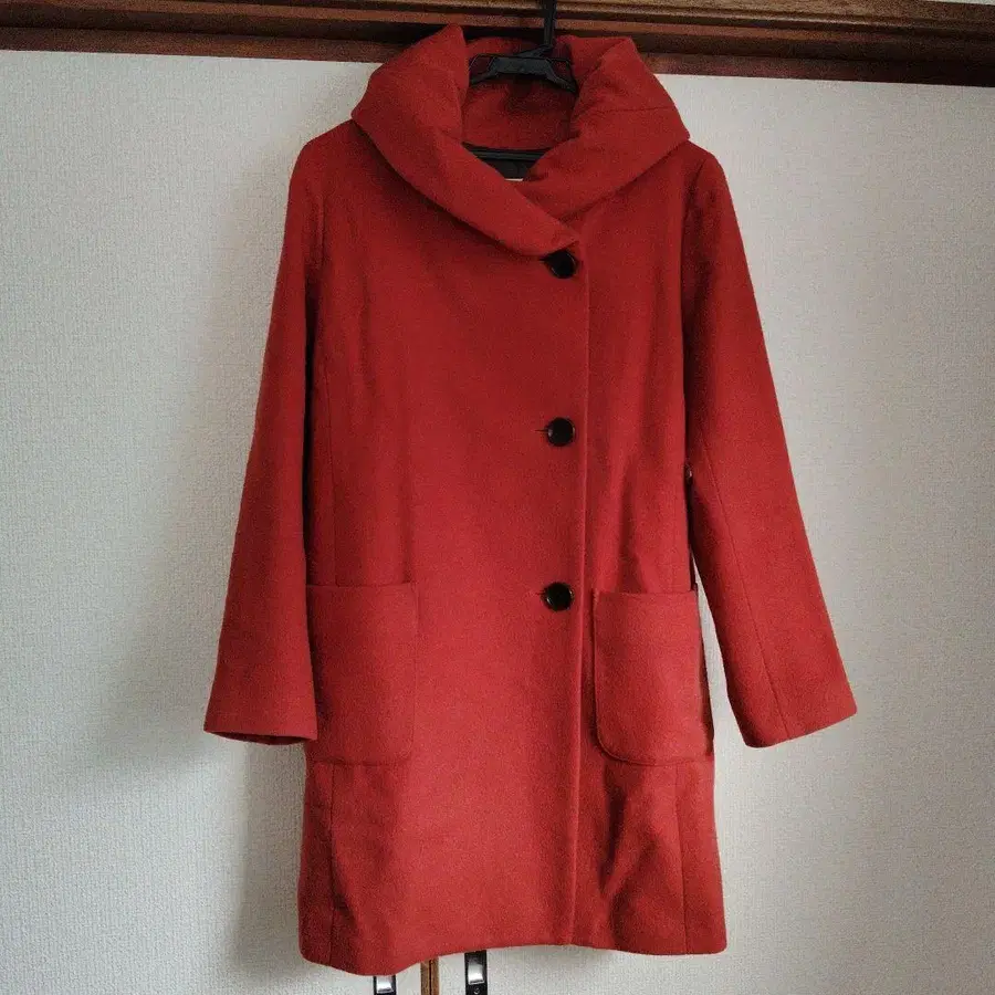 헤치마 옷깃 후드에도 되는 2way 오렌지 무릎 기장 코트