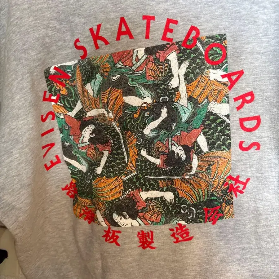 EVISEN SKATEBOARDS 그레이 후드 부착 맨투맨