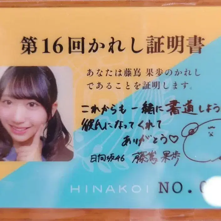 히나타자카46 후지시마 카호 히나코이 제16회 남자친구 인증서