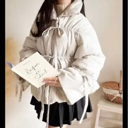 merrylatte 리본 소매 다운 자켓