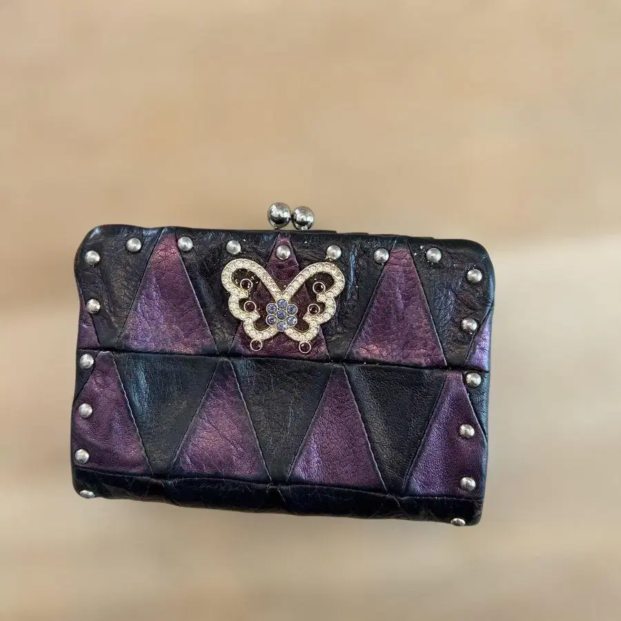 보라색과 블랙의 삼각형 디자인 이단 접이식 지갑