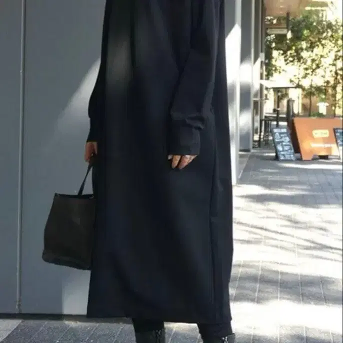래글런 슬리브의 크루넥, 스트레이트 실루엣의 롱 기장.
