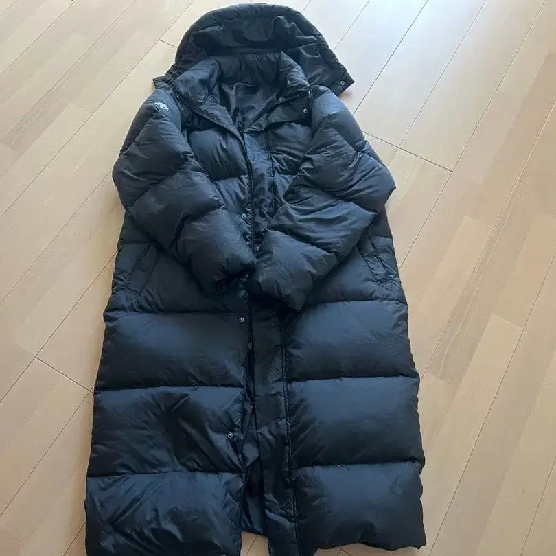 DESCENT 데상트 원포인트 자수 로고 슈퍼 롱 다운 코트 블랙