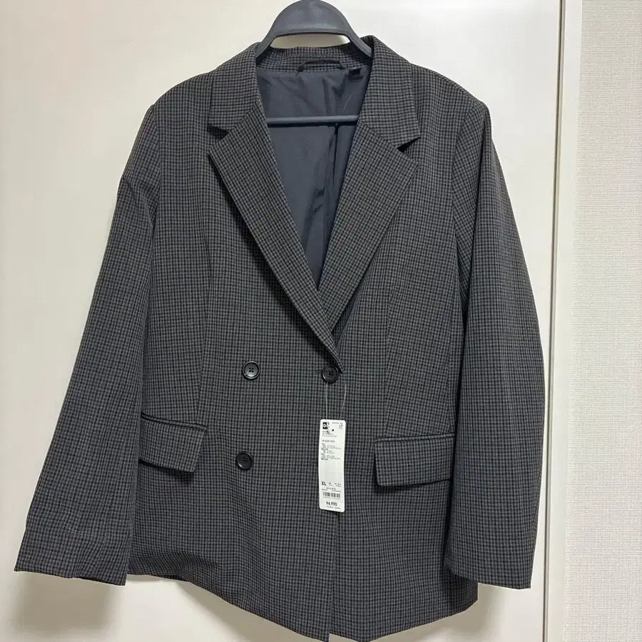GU 다크 그레이 더블 브레스트 체크 자켓 XL