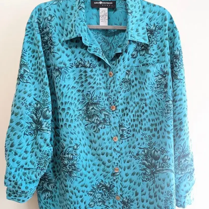꽃무늬 코튼 셔츠 파랑