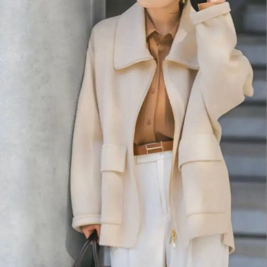 Noble 카멜 믹스 리버 지퍼 코트 컬러: 화이트 A 사이즈: 38 정가: 59,400엔 2회 정도 착용했습니다. 눈에 띄는 흠집이나 얼룩 없이 아직 충분히 착용 가능합니다. 카멜색 실을 믹스한 가볍고 따뜻한 비버 소재의 미들 코트. 약간의 탄탄함과 깨끗한 광택에 더해, 샤기 라이크한 털 길이도 갖춘 고급스러운 질감이 자랑입니다. NOBLE 별주로 오더한 프론트의 윤기 나는 골드 지퍼는 액세서리 같은 존재감. 스타일링에 럭셔리한 에센스를 한 스푼 더해줍니다. 옷깃은 높게 설정했지만, 흐물흐물한 원단이라 너무 차갑지 않고 여성스러운 인상을 줍니다. 프론트에 배치한 빅 사이즈 플랩 포켓으로 캐주얼한 요소도 더했습니다. 러프한 데님 스타일부터 고급스러운 스커트 룩까지, 폭넓은 코디에 잘 어울려 올겨울 최고의 아우터가 되어줄 것입니다. **************** 사이즈 - M