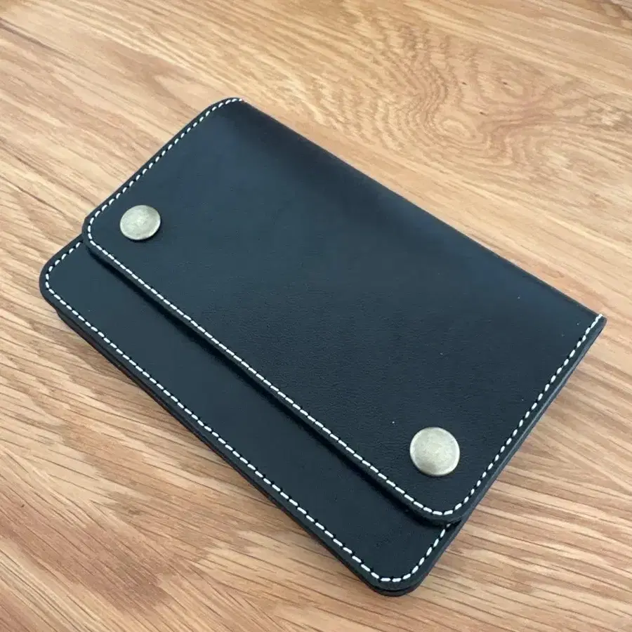 도치기 가죽 3층 구조 미들 트래커 지갑 블랙