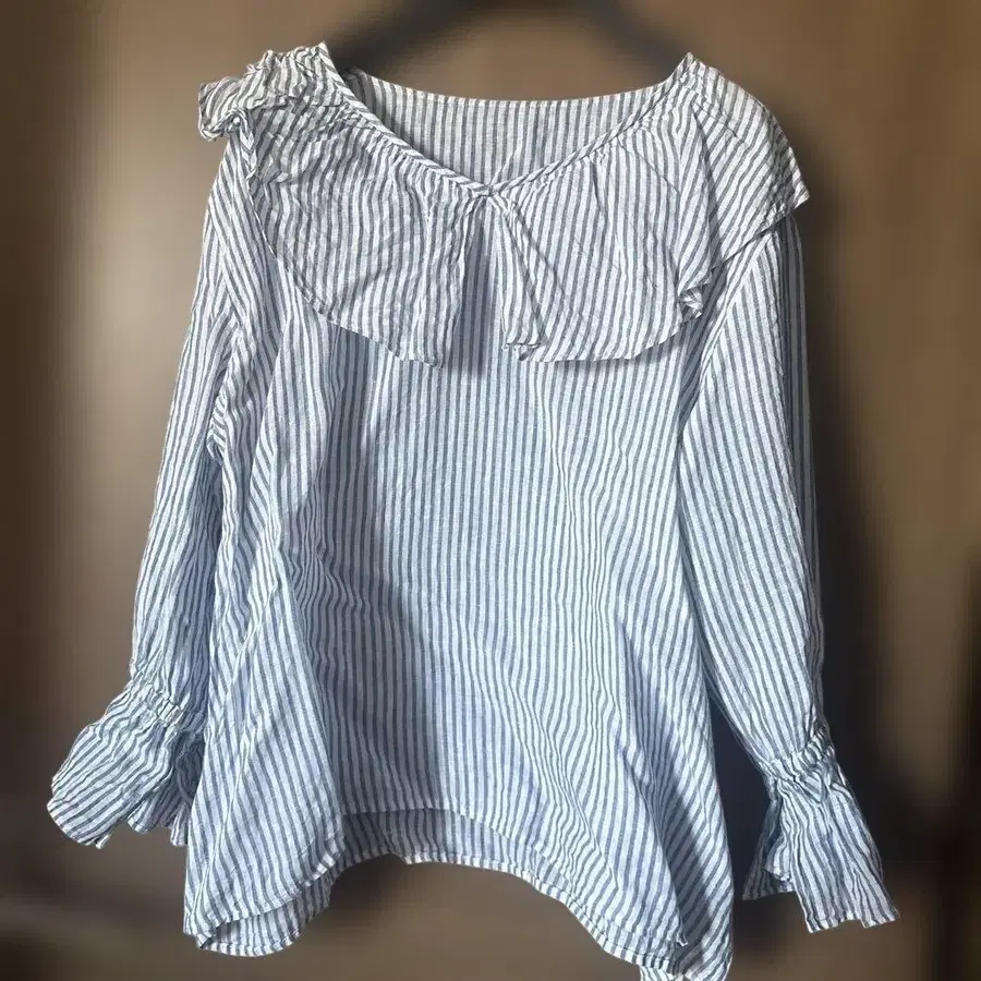 23구 린넨 스트라이프 프릴 블라우스