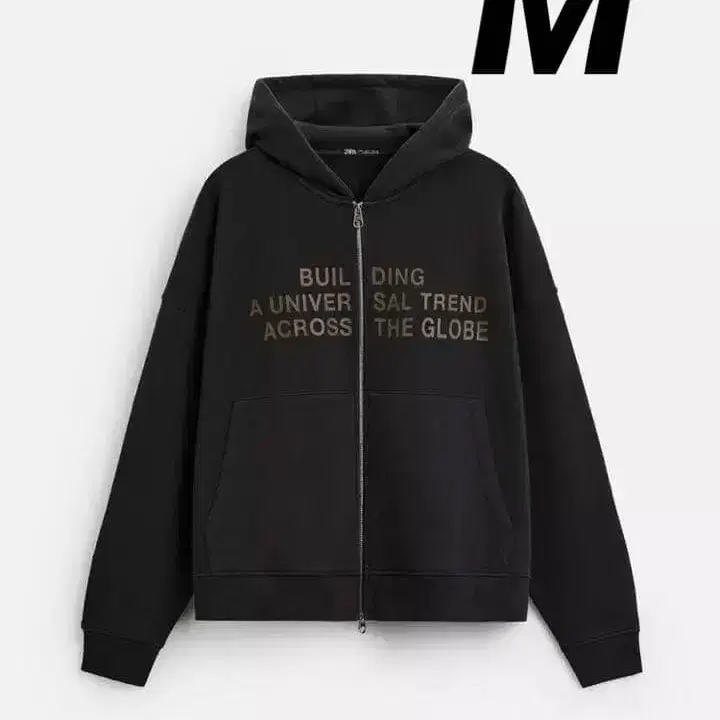 ZARA 자라 워시 가공 지퍼 달린 텍스트 프린트 후디 M