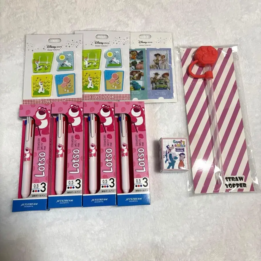 디즈니 스토어 볼펜 아크릴 스티커 피규어 씰 스트로우