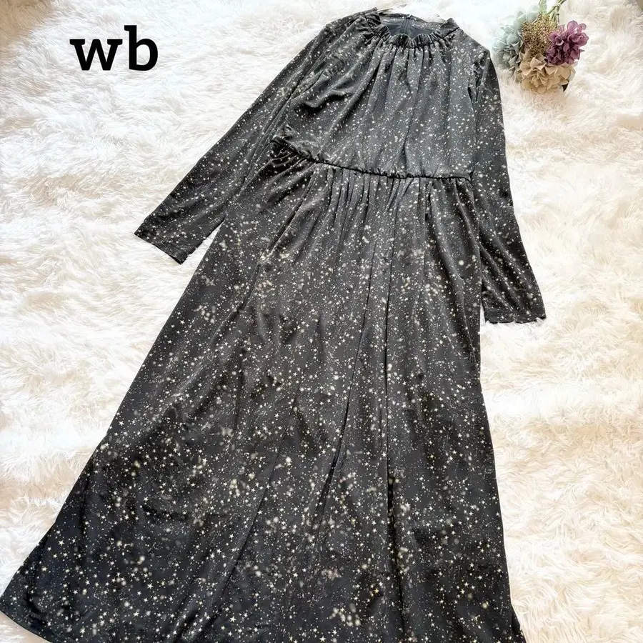 wb 모가 올 패턴 개더 하이넥 롱 원피스 맥시 길이 스트레치 별 패턴