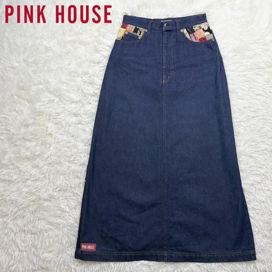핑크하우스 롱 스커트 패치워크 M 네이비 여성용