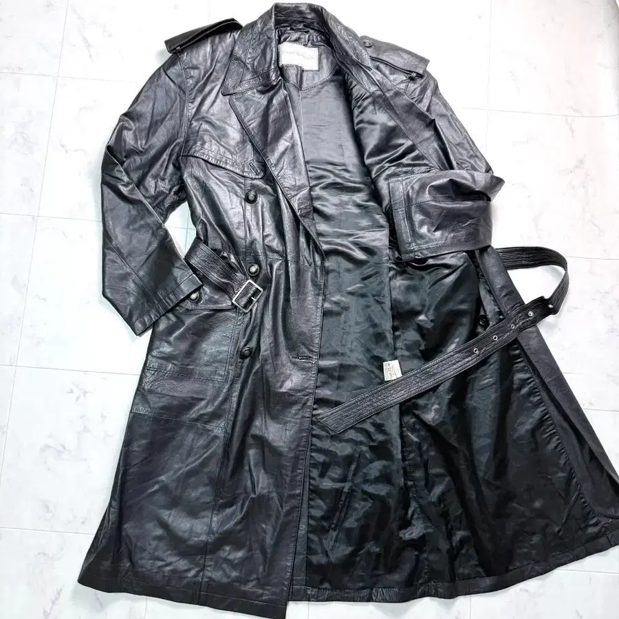 스페인산 롱 기장 천연 가죽 트렌치코트 롱 코트 더블 블랙