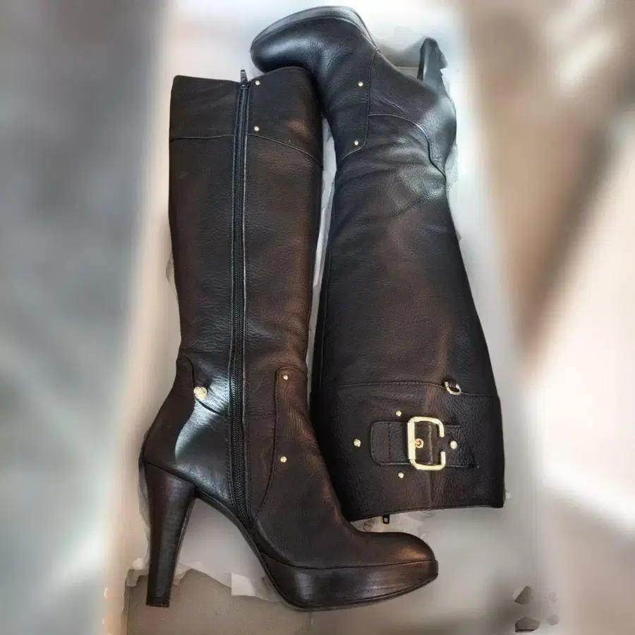 새상품급 가죽 롱 부츠 블랙 높은 힐
