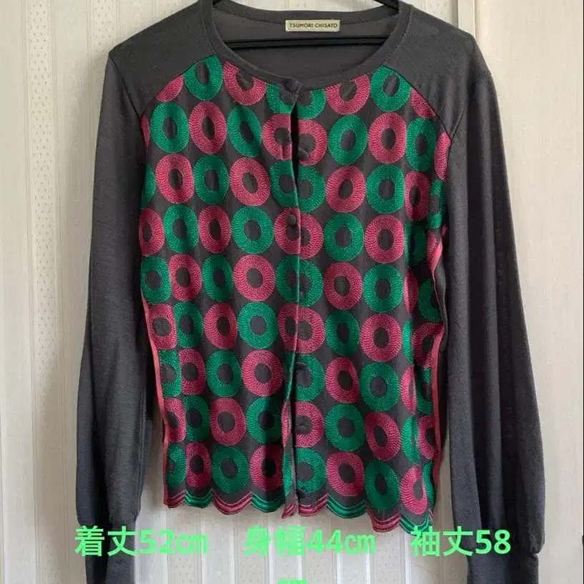 츠모리치사토 도트 무늬 긴팔 가디건