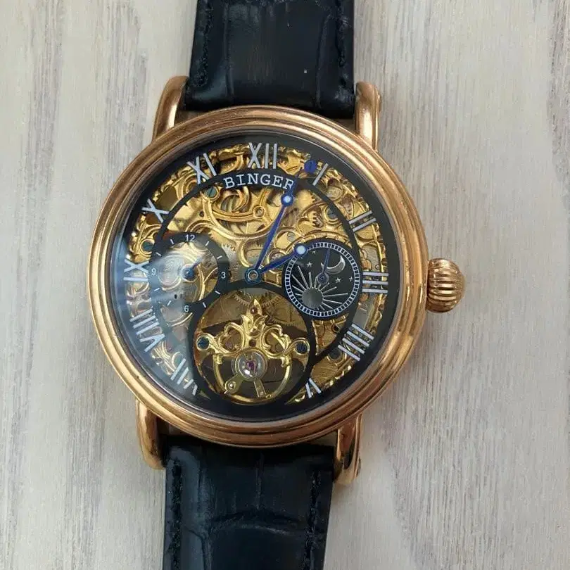 BINGER 스켈레톤 자동 시계 골드/블랙