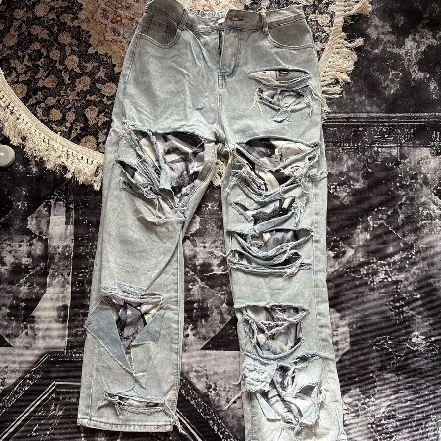 구제 의류 리메이크 라이트 블루 데님 팬츠