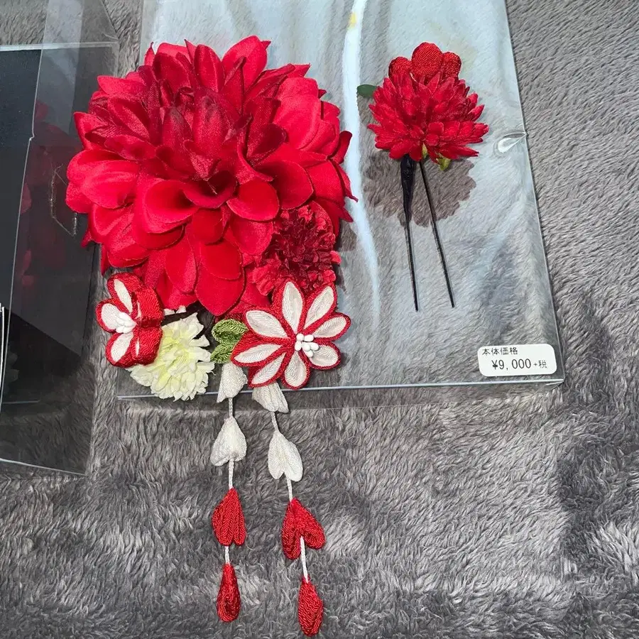 빨간 꽃 장식 헤어콤 세트