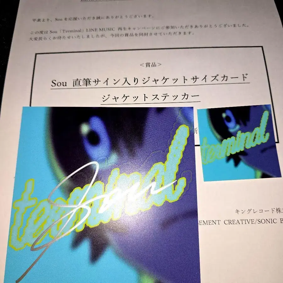 당첨품 우타이테 sou 친필 사인 포함 자켓 사이즈 카드 스티커