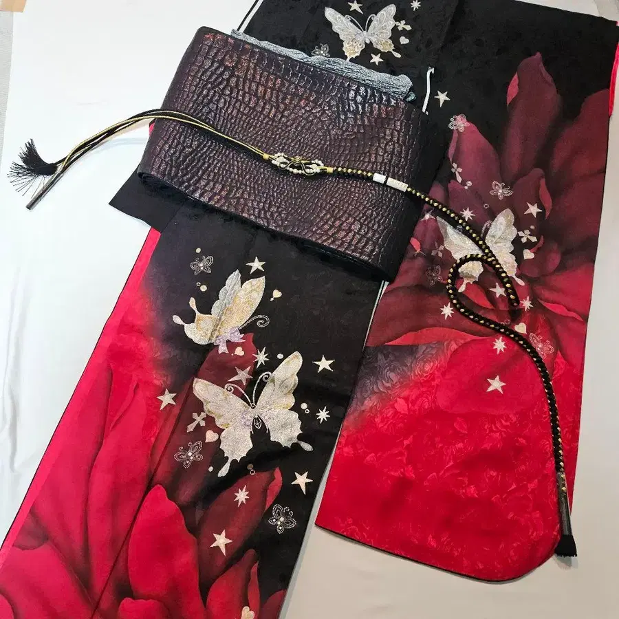 블랙 x 빨간색 x 금채 후리소데 후리소데 단품 가격 재단 완료 상품