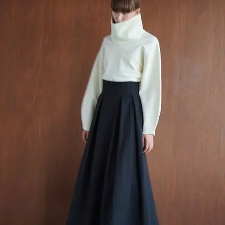 적당한 두께감과 탄력 있는 소재를 사용한 볼륨감 있는 실루엣이 포인트인 맥시 스커트.