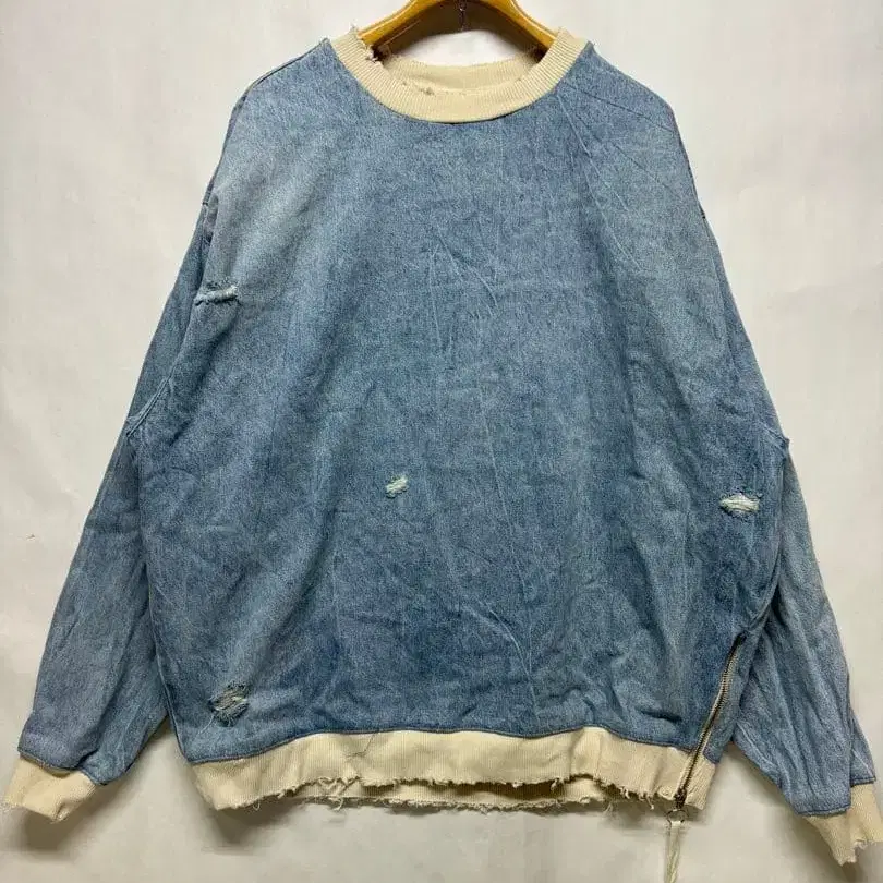 자라 ZARA 데님 데미지 가공 L 오버 사이즈 풀오버 지퍼
