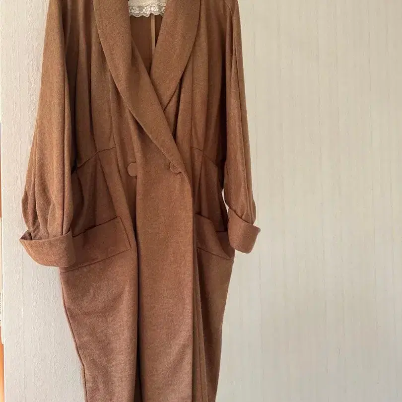브라운 더블 브레스트 체스터 코트 퍼퍼