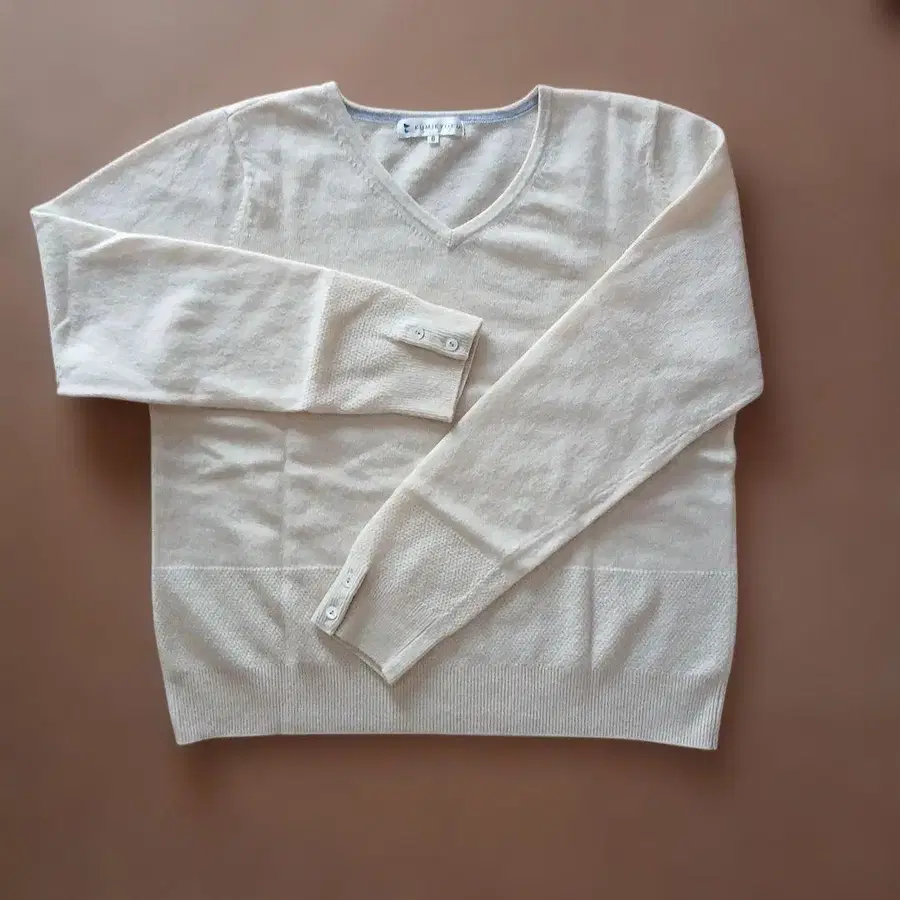 쿠미쿄쿠 캐시미어 아이보리 V넥 니트