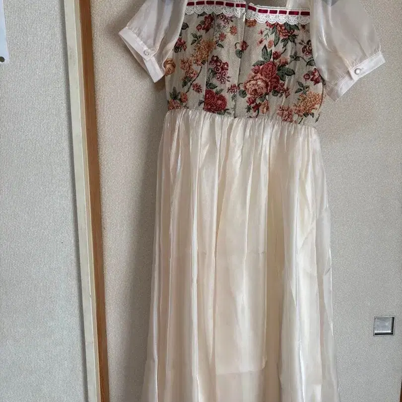 꽃무늬 자수 반팔 롱 원피스 아이보리