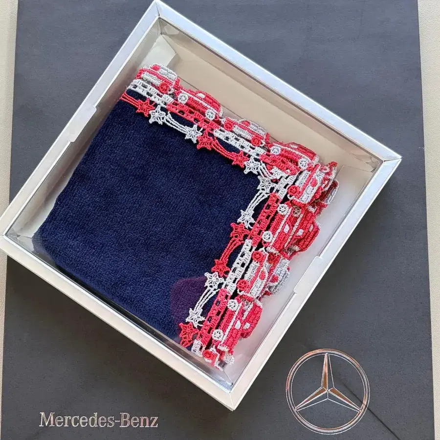 새상품 긴자와 레이스 벤츠 콜라보 손수건 네이비