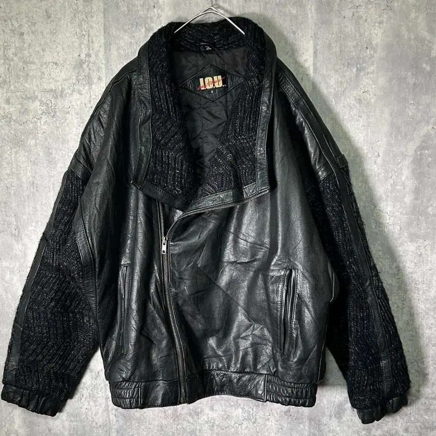 자동 번역되었어요. 원문보기Genuine leather knit switching design jacket blouson black