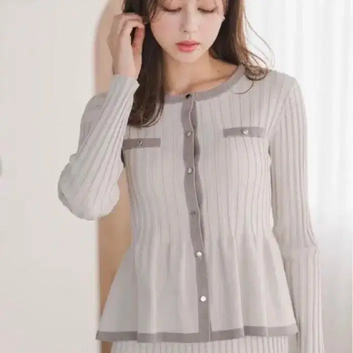 배색을 살린 와이드 리브 편직이 세련된 인상을 주는 페플럼 라인의 가디건입니다. 세로 라인을 강조하는 약간 와이드한 리브 짜임이 슬림한 실루엣으로, 날씬해 보이는 효과를 줍니다. 배색 디테일과 골드 버튼, 포켓 디자인이 이번 시즌 트렌디한 포인트입니다. 단품으로도 돌려입기 좋으며, 팬츠 스타일에도 추천합니다. MM547206 스커트와 세트로 착용하면 통일감 있는 스타일을 완성할 수 있습니다. 온/오프라인에서 활약하는, 세련된 성인을 위한 셋업입니다.