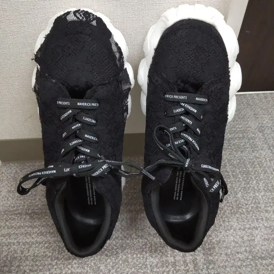 애쉬 레이스 소재 블랙 스니커즈 통굽