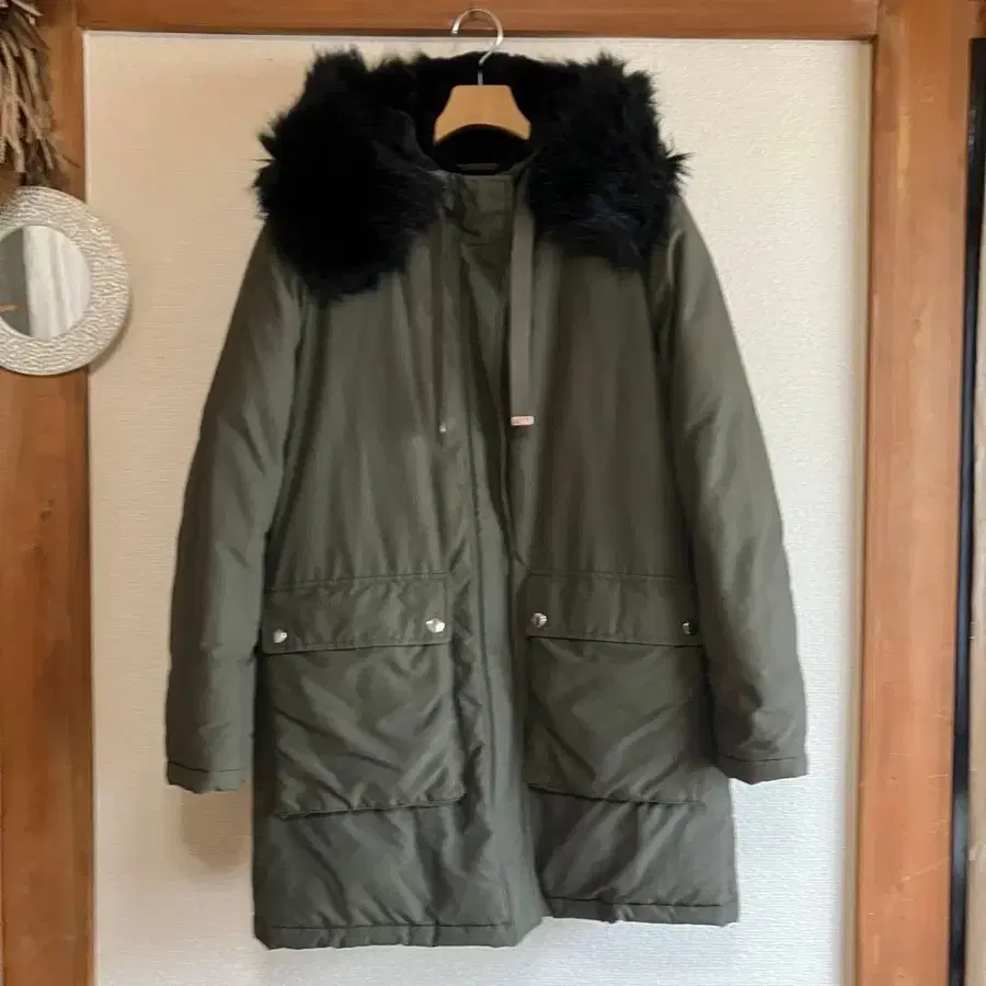 ZARA 올리브 그린 모즈 코트 퍼 포함
