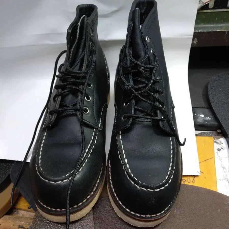 블랙 가죽 워크 부츠 톰 맥켄 오일 가죽입니다