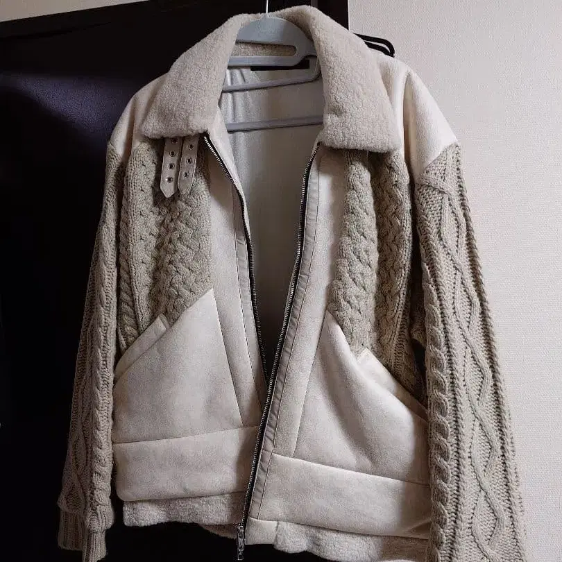 NO ID. 케이블 짜임 자켓 아이보리 블루종 가죽